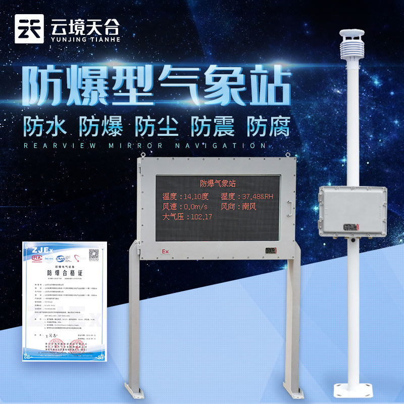 煤矿防爆气象站是针对煤矿环境所生产的气象监测设备,是山东云境天合专门为煤矿等易燃易爆场所设计的监测设备,可以对区域内的风速、风向、空气温度、湿度、大气压力五种要素进行精准实时监测。煤矿防爆气象站对煤矿区域的气象监测是保障安全的需要,一般易燃易爆场景受气象环境影响很大,高温、高压、高湿等环境都会导致事